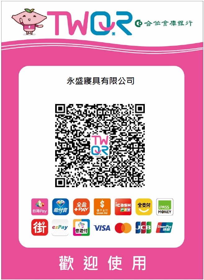 6、您同意接受本公司之「網站隱私權政策」,您在本網站留存之個人資料將被保密,並對這些資料為必要之授權。您不得收集或儲存或使用或發放其他永盛寢具會員之個人資料。